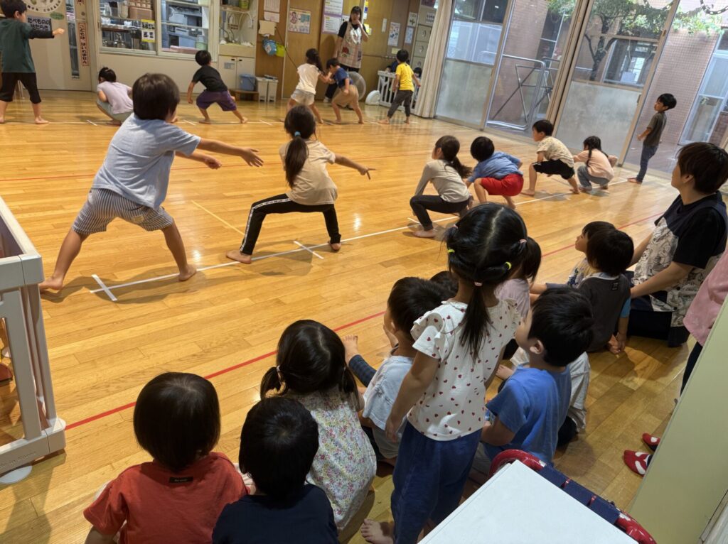 特にひまわり組(5歳児)は、過去のひまわり組のかっこいいソーラン節を見て憧れていたので、気合いが入っています!!
