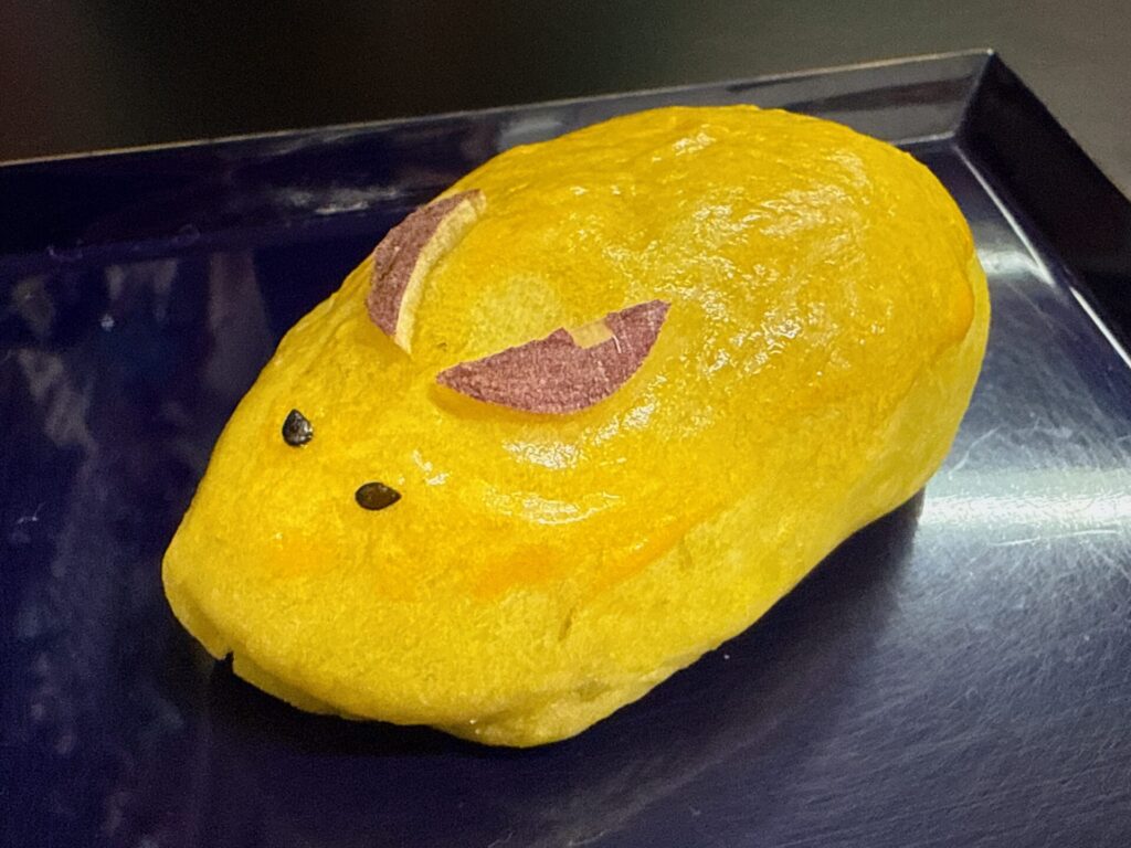 コロンとしたフォルムに、目は黒ゴマ、耳はサツマイモの皮で出来ています。